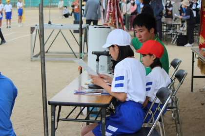 午前中は、係の仕事で活躍しました。決勝、用具、放送、誘導、救護、団席管理等、運動会の運営がスムーズに運ぶように心がけました。