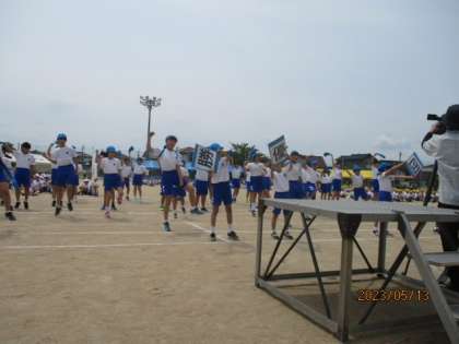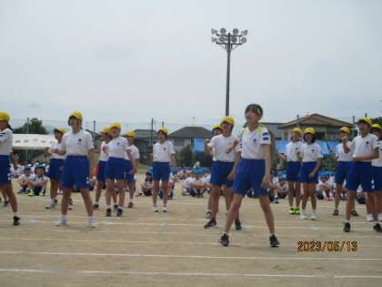 応援合戦は、5・6年生が中心でした。1〜4年生は後方で手拍子と「オー」のかけ声で参加しました。