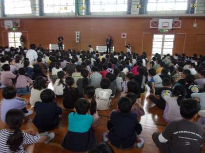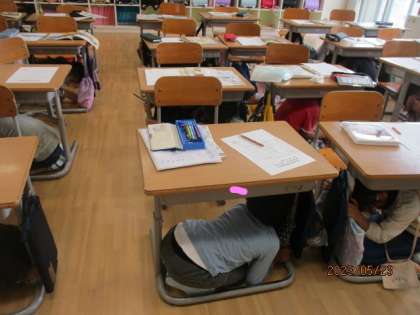 避難訓練がありました。地震が起きたことを想定して、自分の身を守ったり静かに指示を聞いたりすることができました。体育館に避難した後は、姿勢を正して先生の話を聞いていました。自分の命を守るための行動が、しっかりと身に付いてきました。
