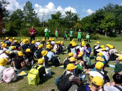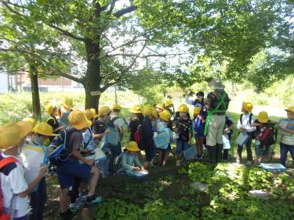 校外学習で、日産ビオパークに見学に行きました。解説ボランティアの方々の話を聞き、子供たちはメモをとっていました。