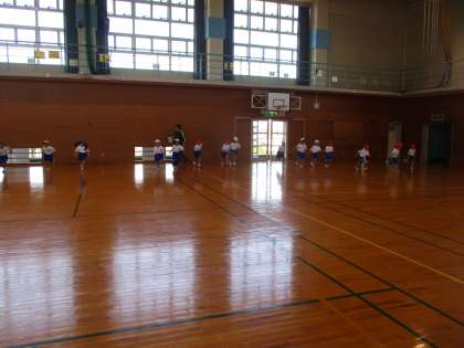 6年生と一緒にシャトルラン(20mを往復する運動)を行いました。まず、6年生の手本を見て、「がんばれ」「すごい」と応援しました。その後、1年生も行いました。自分の限界に挑戦した子供たちは、終わった後に「楽しかった」「またやりたい」と話していました。