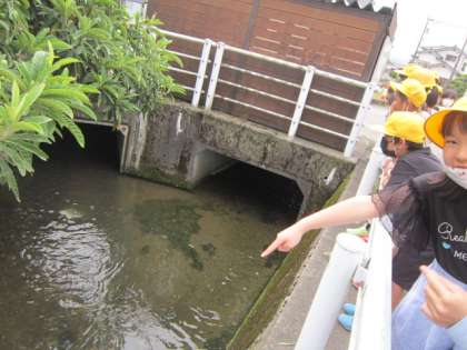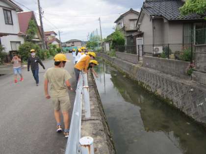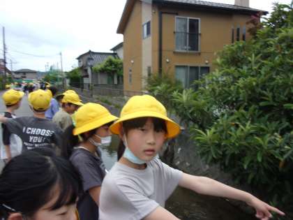 今日は、学校のそばを流れる田島川の観察をしました。子供たちは、一生懸命に生き物を探していました。