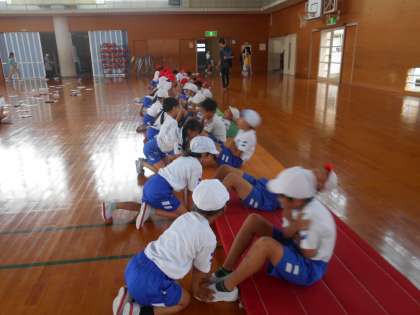 今日の体育科の授業では、反復横跳びと上体起こしに取り組みました。よりよい記録を目指して、一生懸命がんばりました。