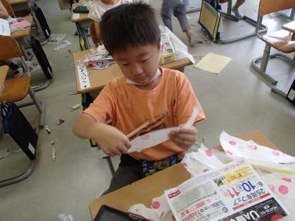 図画工作科では、紙を破いた形から、想像して楽しむ活動をしました。来週、続きの活動をするのが楽しみです。