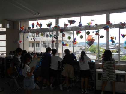 子供たちがつくった「カラフルフレンド」の作品を鑑賞しました。名札に書いてある友達の作品の工夫を見付けて、感想をたくさん書いていました。
