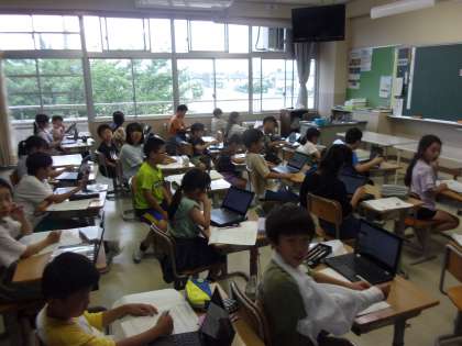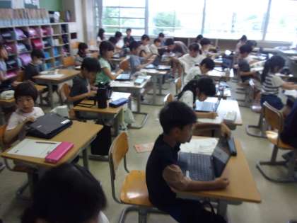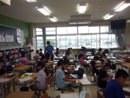 総合的な学習の時間では、先日見学に行った際に見付けた「鵜坂のすてき」について、クロムブックや資料、本等を使ってくわしく調べています。