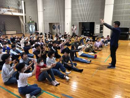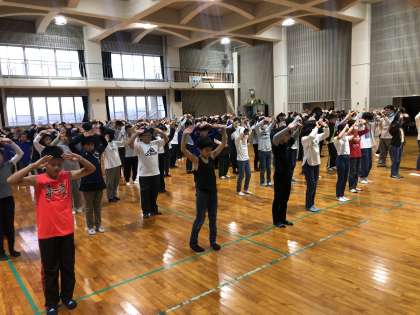 夕べの集いでは、学校紹介としてさんさい踊りを披露しました。