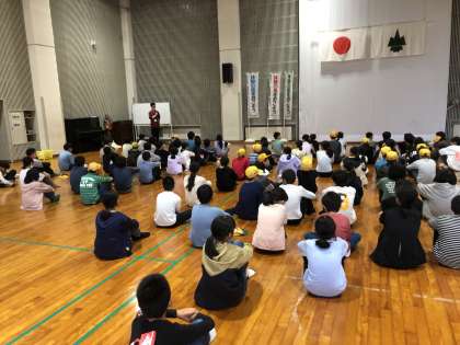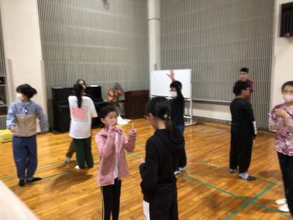 朝の集いです。ラジオ体操をしてから、ゲームをして楽しみました。