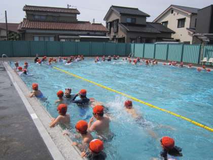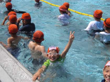プール開きを行いました。一年振りのプール学習に、大興奮の様子でした。