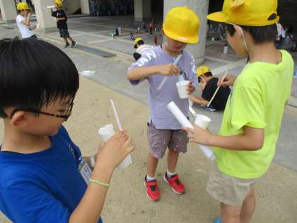 生活科の時間には、シャボン玉遊びをしました。うちわやストローを使って、いろいろな大きさのシャボン玉を作りました。子供たちは、「高く飛んだシャボン玉がきれいだった」「友達とシャボン玉遊びをしたことが楽しかった」など、自分の作ったシャボン玉に愛着をもちながら、楽しんで活動に取り組みました。