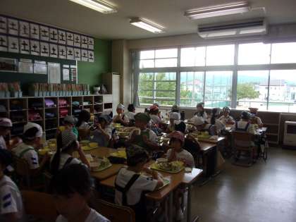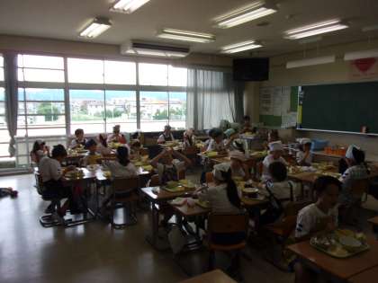 2学期からは、対面の座席で友達と話しながら食べ始めました。今日の出来事や夏休みのことなどを、楽しそうに話す姿が見られました。