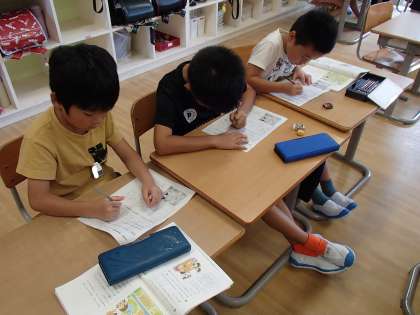 国語科「ことばでみちあんない」の学習では、友達と協力して待ち合わせ場所を決め、待ち合わせ場所までたどり着くまでの道案内について考えました。どのような道順にしたら分かりやすいか、友達と相談して考えました。