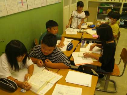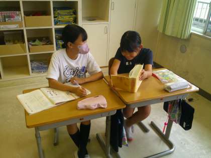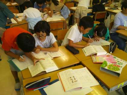 国語科の学習では、同じ読みで違う意味の言葉を国語辞典で調べ、問題づくりを行いました。子供たちは、ペアで協力しながら一生懸命取り組みました。