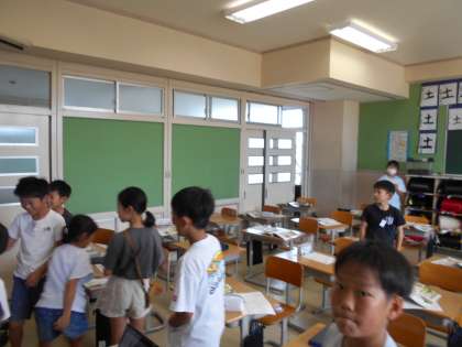 図画工作科では、自分が小さくなったとしたら、どんなところで何をしているか想像しました。子供たちは、いつもならできないことをいろいろと考えていました。手始めに、小さくなった先生が、どこで何をしているのか探しました。ほらっ、そこにいるよ。