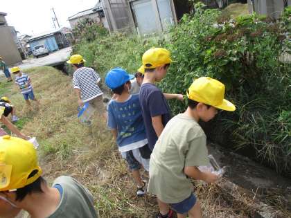 生活科では、秋の生き物探しに行きました。池の中をのぞいたり、石をめくったりして捕まえた生き物を虫かごに入れ、形や色を観察しました。たくさんの生き物を見付けることができた子供たちは、観察後にはそっと見付けた場所に生き物を戻していました。