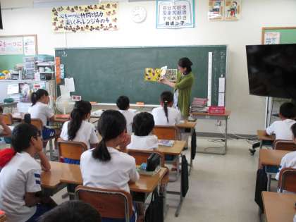 朝の学びタイムには、読書ボランティアの方に絵本の読み聞かせをしていただきました。子供たちは、今日はどんなお話だろうと楽しみにしていたので、本の世界に入り込んで聴いていました。