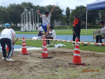 男子のソフトボール投げと走り幅跳びは、サブ競技場で行いました。みんな自分の記録更新を目指して頑張りました。