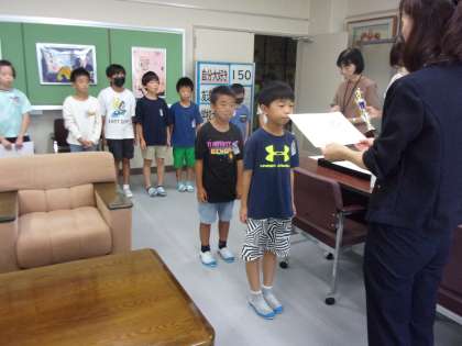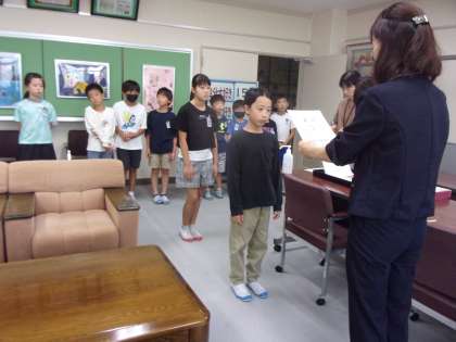 校長先生から名前を呼ばれると、大きな声で返事をしてから賞状を受け取りました。