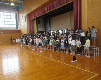 今日は、学習発表会の並び方の練習をしました。自分の位置を確かめながら、真剣に取り組みました。