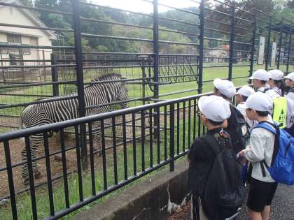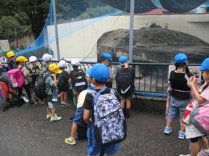 最初の活動は、クイズラリーでした。子供たちは、色団ごとにペンギン、トラ、シマウマについてのクイズに答えました。様々な動物のことをよく見る姿は、「いきものとわくわく」でした。また、色団全員がそろっているか確認したり、声をかけ合ったりする姿は、「ともだちとわくわく」でした。