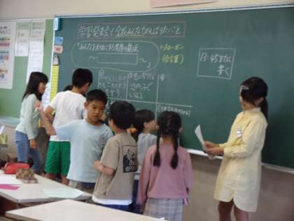10月4日(水)の代表委員会に向けて、学習発表会のスローガンを話し合いました。「全校みんなでがんばりたいこと」について、グループで意見を出し合いました。