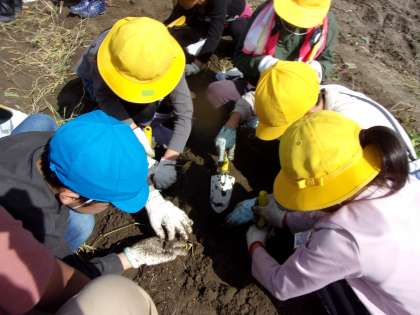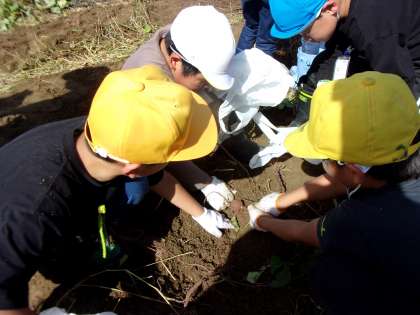 異学年交流として、4年生と一緒にサツマイモ掘りをしました。友達と協力して掘る子や4年生に助けてもらいながら掘る子など、みんなで秋の収穫を楽しみました。
