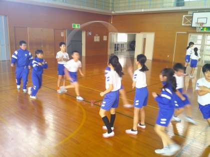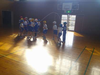 体育科では、校内のなわとび大会に向けて、8の字跳びを練習しています。各クラスで、どうすれば引っかからずに跳び続けることができるか、どうすれば短い時間で多く跳ぶことができるかについて話し合い、一生懸命に練習に取り組んでいます。