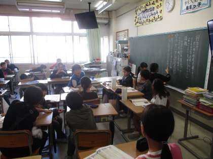 国語科「クラスみんなで決めるには」の学習では、12月の学年集会でどのような出し物をするか話合いで決めました。司会や記録、タイムキーパー等の役割を決めて進行したり、積極的に意見交換をしたりしていました。