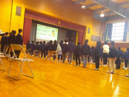 普段お世話になっている学校ボランティアの方へに気持ちを伝えるために、感謝の集いを行いました。子供たちは、ボランティアの方への感謝の気持ちを込めて、朝の時間に練習していた「いのちのオーケストラ」を元気よく歌いました。