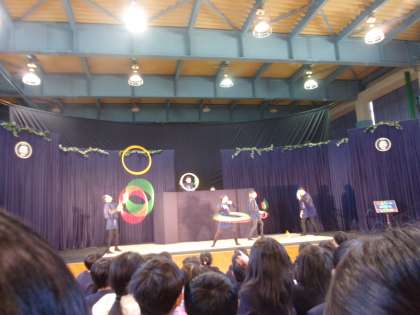 劇団あとむの方による音楽劇「あとむの時間はアンデルセン」を鑑賞しました。アンデルセン作のお話や棒とボールとリングを使ったアニメイムの演技を楽しんで見ることができました。