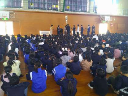 今日は、清掃時間中に大きな地震が発生したと想定した避難訓練を行いました。子供たちは、校内で散り散りになっているなか、自分たちで放送を聞き、安全に避難することができました。