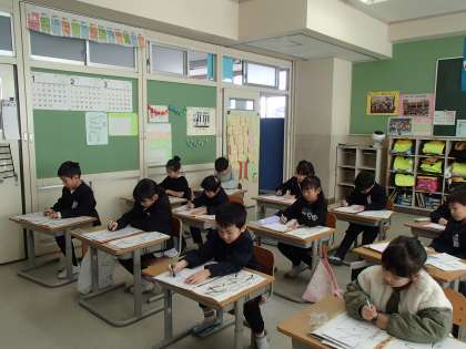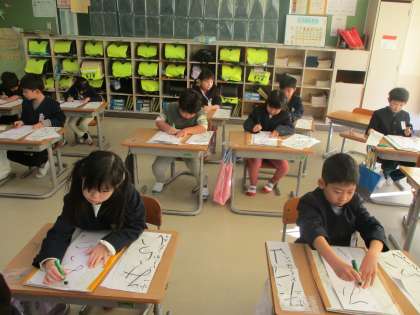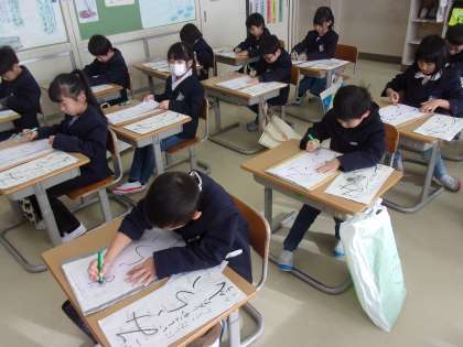 1年生にとっては、初めての書き初め大会でした。心を落ち着かせて、姿勢良く取り組みました。