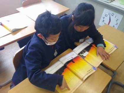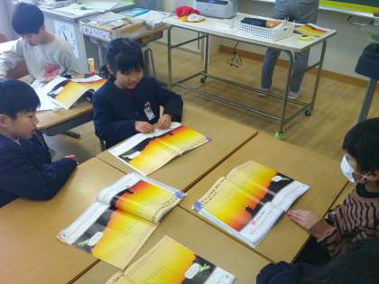 音楽科では、「夕やけこやけ」の歌を学習しました。歌詞の様子について思い浮かべたことを伝え合いながら、歌っていくうちに、「どんなふうに歌ったらいいかな」と考え始めていました。