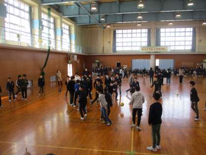 卒業を祝う月間では、5年生が「クラス対抗お楽しみドッジボール」を企画してくれました。ボールをキャッチできたとき、当たったとき、よけるときも、体育館中に大きな声が響いていました。