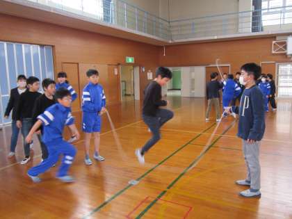 クラスの垣根を越え、チームに分かれた活動が始まりました。それぞれの活動場所で、真剣に取り組む姿が見られました。体育館では、声をかけ合いながら8の字跳びの練習に取り組みました。、2組では、合奏に向けて計画を立てています。