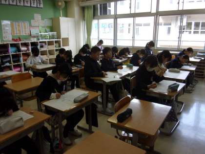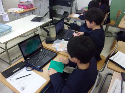 3組では、学習に集中して取り組んでいました。4組では、作品づくりの技を習得しようと、調べたり実践したりしていました。
