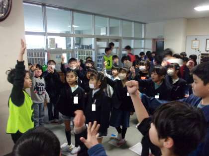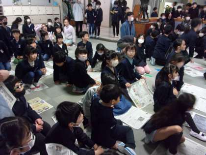 リフレッシュタイムには、集会委員会が企画した「新聞ジャンケン大会」に参加しました。小さくなっていく新聞にハラハラしながら、ジャンケンを楽しみました。