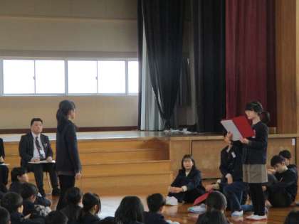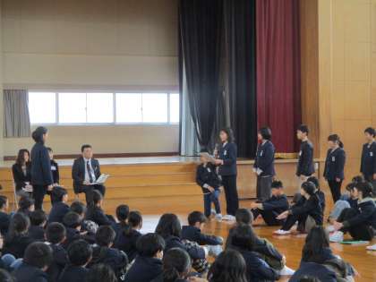 委員会引き継ぎ式を行いました。今年度の委員会活動を振り返り、来年度に向けての気持ちを高めていました。