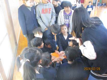 今日は、5年生が企画した6年生との交流活動に参加しました。今まで話したことのなかった6年生さん、一緒に参加していた2年生さんと楽しく話しながら交流を楽しみました。