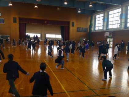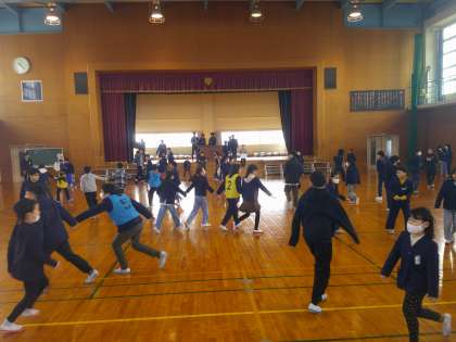 6年生との交流活動では、手つなぎ鬼をしました。活動の最後には、これまで学校を支えてくれた6年生に、声をそろえて感謝の気持ちを伝えました。