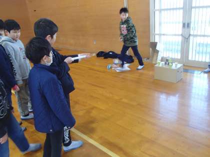 4組は、「8の字跳び よいところ見つけ大会」を行いました。他のクラスの跳び方を見て、「誰かが失敗しても、温かい言葉をかけ合っていてよかった」「跳びやすいようにみんなで声を掛け合っているのがよかった」など、たくさんのよいところを見付け、伝え合うことができました。