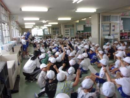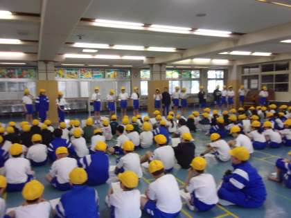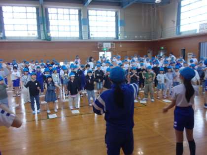 結団式を行いました。全校児童が4つの団に分かれて、団役員や団リーダーの紹介、応援練習を行いました。6年生は、下級生に優しく教えたり、声をかけたりしていました。