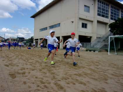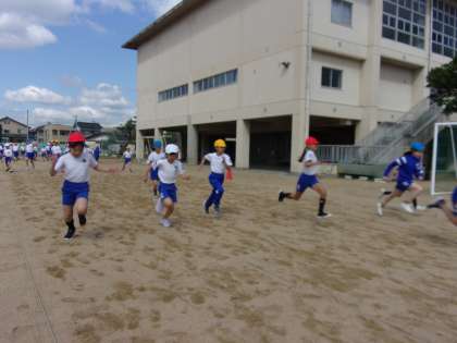 運動会に向けて、走順を確認してから走る練習をしました。腕の振り方や目線を意識しながら、何度も走りました。