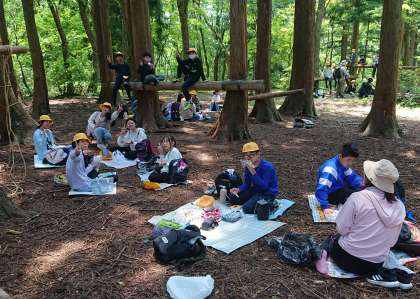 自分たちの遊び場で、昼食をいただいています。