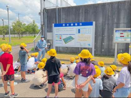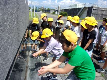 講義では、スライドや実験を用いて、水がきれいになる仕組みを学びました。その後、施設内を見学したり、濾過された水を飲んだりしました。子供たちは、見たり聞いたりしたことを熱心にメモを取っていました。