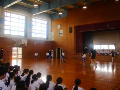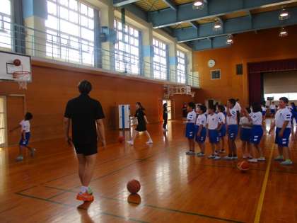 今週木曜日にグラウジーズの選手が来てくださり、基礎的な動きの練習やゲームを行いました。貴重な体験に子供たちは、目をきらきらさせながら取り組んでいました。