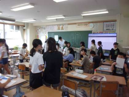 久しぶりに学校に、元気な5年生の子供たちの声が聞こえていました。夏休みの課題を提出したり、学級でレクリエーションをしたりしました。