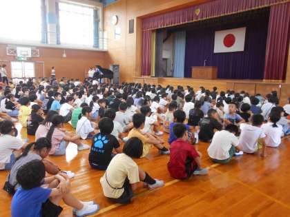 第2学期始業式を行いました。校長先生から、パリオリンピックの選手の言葉について、「みんな一人一人に価値がある。自分を信じて行動していきましょう」という話があり、子供たちはしっかりと聞いていました。2学期は、3年生だけで活動することが何回もあります。自分の力を信じて、様々な活動に取り組んでほしいと思います。