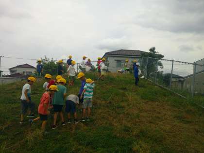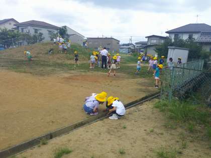 生き物となかよくなるために、校庭に虫を捕まえに行きました。ただ捕まえるだけでなく、虫たちが気持ちよく過ごすためにはどうしたらよいのかを考え、虫かごの中の環境を整えていました。