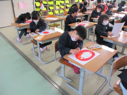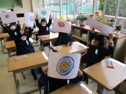 クレヨンで、おひさまの絵をかきました。色や模様を工夫して、楽しみながら描いていました。
